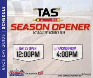 Carrick is a small and historic town of around 450 people and dates back to 1818. Cranes Combined Carrick Speedway has a long and prestigious history starting way back in 1967. From humble beginnings Carrick Speedway has grown into a well respected track throughout Australia.